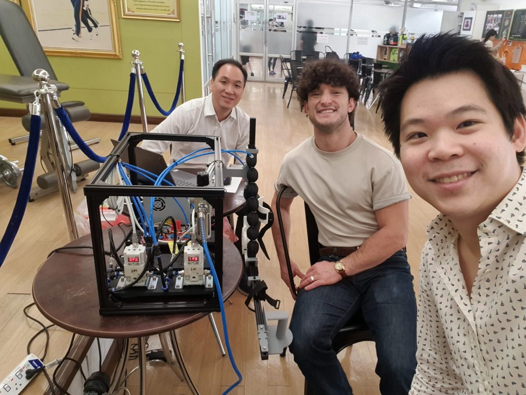 After some months of prototype development, we visited and consulted back to sports scientists at Chulalongkorn University. We arranged preliminary testing at their gait lab and small exhibition to gain more insights on user experience and requirements on our device and soft robotic techology in general.