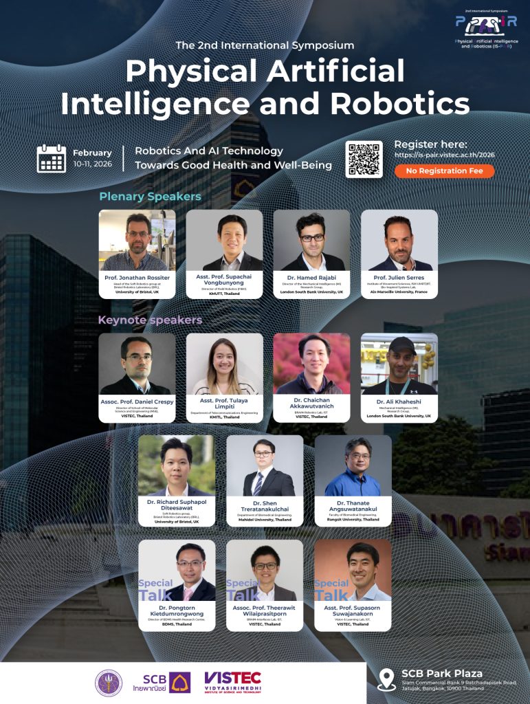 Prof. Jonathan Rossiter and Dr. Richard Suphapol Diteesawat from Soft Robotics group, Bristol Robotics Laboratory (BRL), University of Bristol, UK were the speakers in anual symposium IS-PAIR 2026 at SCB park, Thailand. In this event, Dr. Nahian Rahman from BRL visited Thai team for the first time and demonstrated published technologies from the lab to our audiences. Dr. Chaicharn Akkawutvanich from ARIA research center, VISTEC also participated as a speaker in this event.