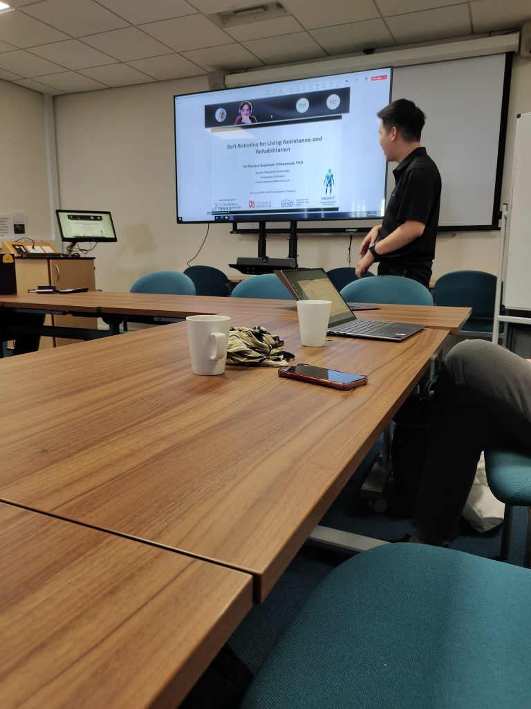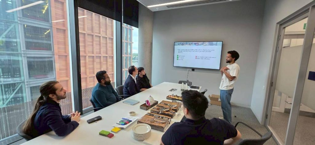 The team had learned and discussed on several topics, for example, soft exosuit and morphological computation.