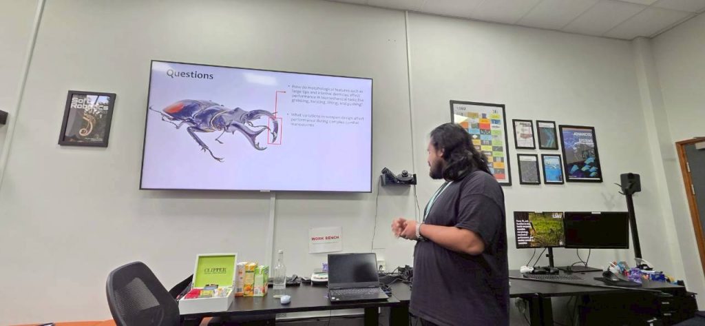 The research works here are mainly on insect-inspired structure, for example, wing structure for drone, mandible of dungbeetle for surgical cutting tool, and other principles behind the natural structures that could be useful in the future.